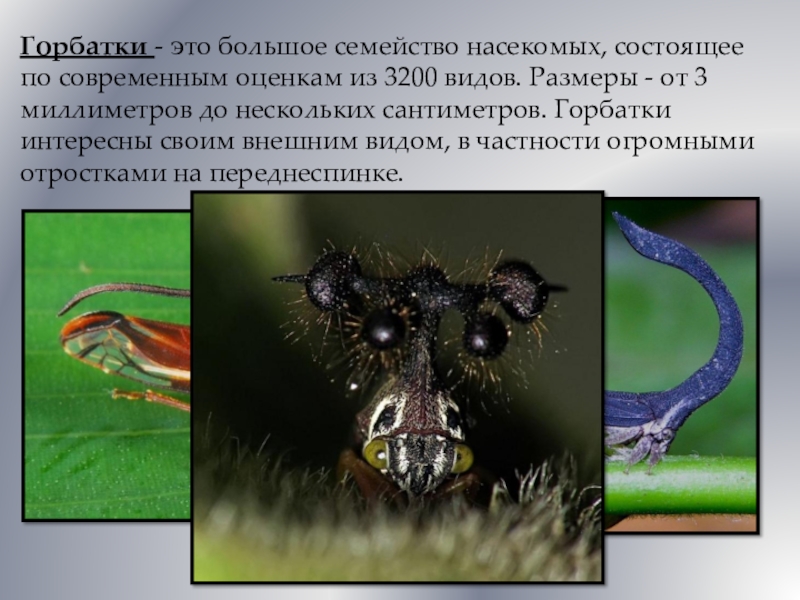Слайд 18Горбатки - это большое семейство насекомых, состоящее по современным оценкам из