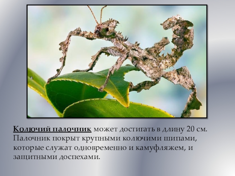 Слайд 15Колючий палочник может достигать в длину 20 см. Палочник покрыт крупными