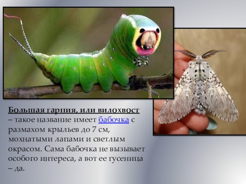 Слайд 8Большая гарпия, или вилохвост – такое название имеет бабочка с размахом крыльев до