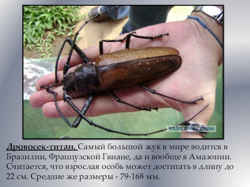 Слайд 19Дровосек-титан. Самый большой жук в мире водится в Бразилии, Французской Гвиане, да