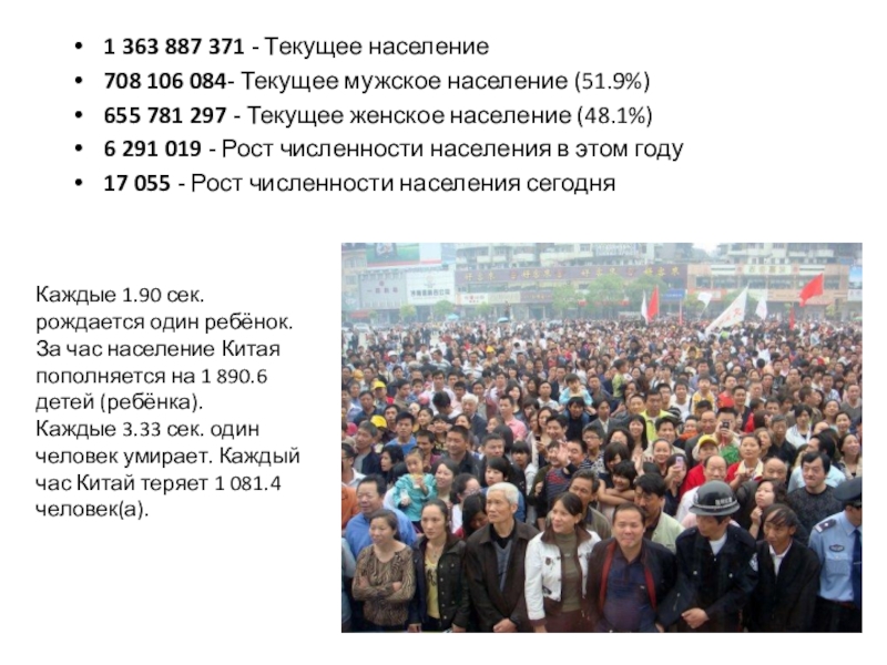 997 человек или на 0.23 %. При этом ожидается, что за год родится 1 586 040 детей и умрёт примерно 2 302 269 человек.