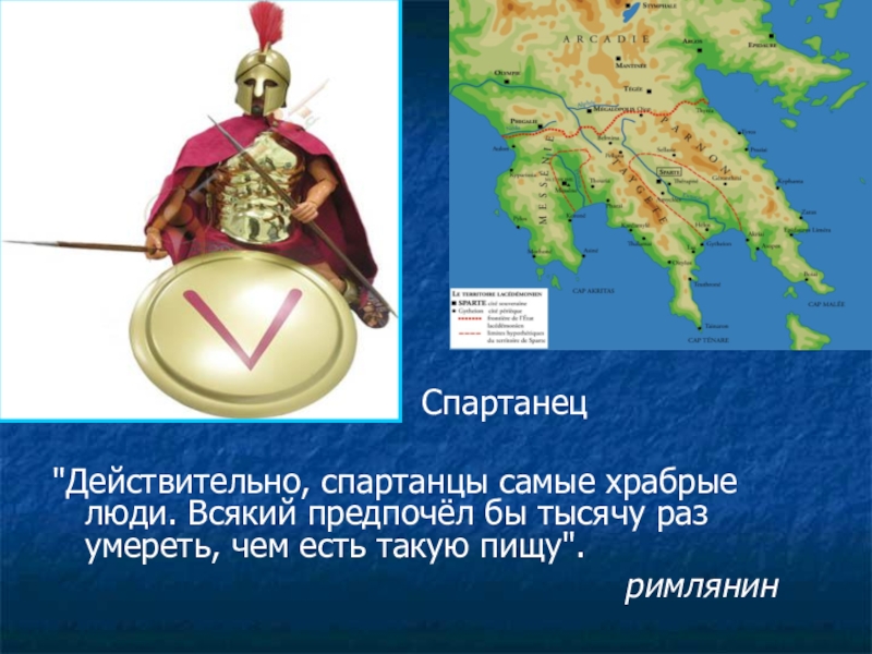"Действительно, спартанцы самые храбрые люди. Всякий предпочёл бы тысячу раз умереть, чем есть такую пищу".