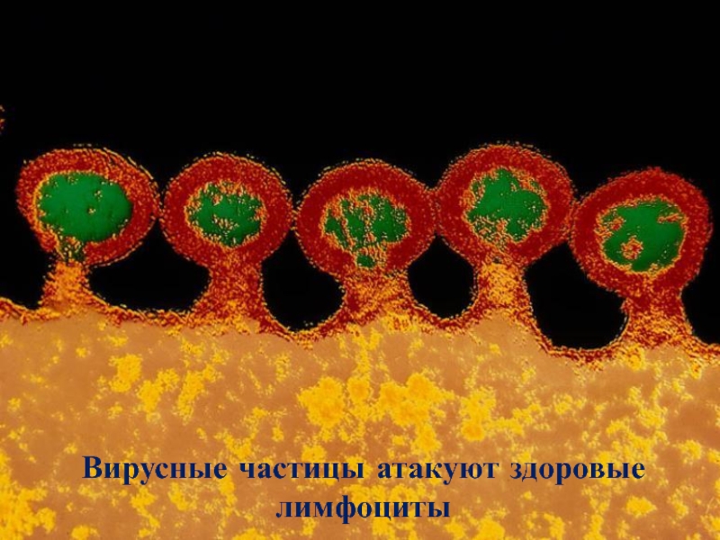 Слайд 18Вирусные частицы атакуют здоровые лимфоциты