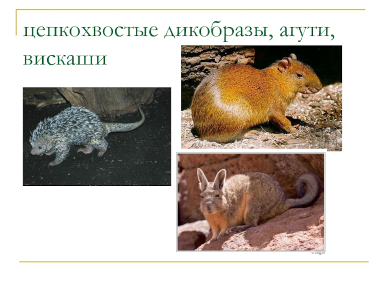 Слайд 17цепкохвостые дикобразы, агути, вискаши
