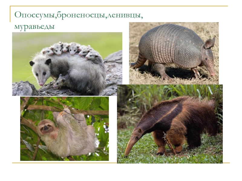 Слайд 14Опоссумы,броненосцы,ленивцы,