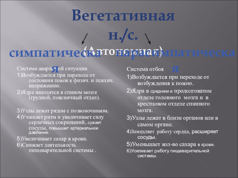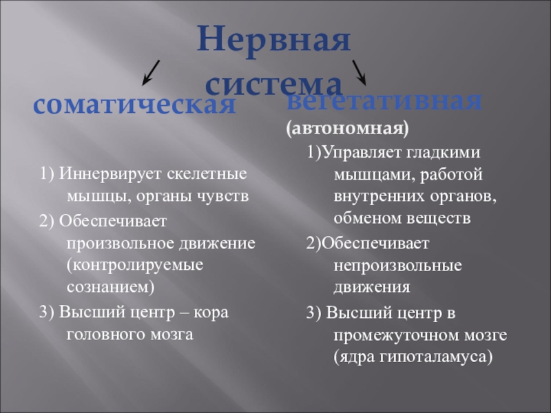 1)Управляет гладкими мышцами, работой внутренних органов, обменом веществ