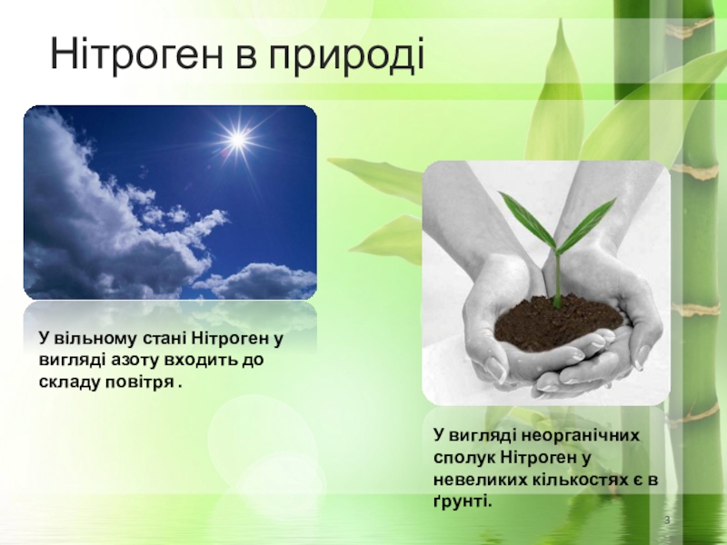 У вигляді неорганічних сполук Нітроген у невеликих кількостях є в ґрунті.