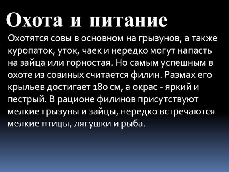 Охота и питание
