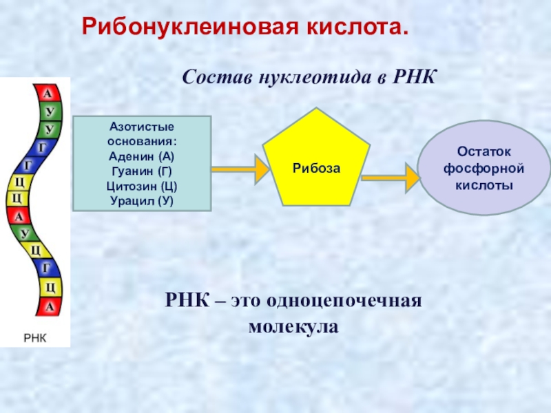 6. Молекулы РНК, в отличие от ДНК, содержат азотистое основание