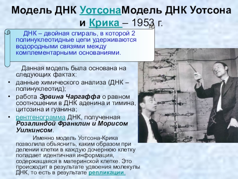 Модель ДНК УотсонаМодель ДНК Уотсона и Крика – 1953 г.