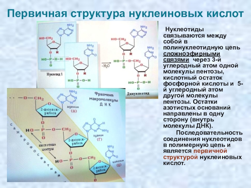 Последовательность соединения нуклеотидов в полимерную цепь и является первичной структурой нуклеиновых кислот.