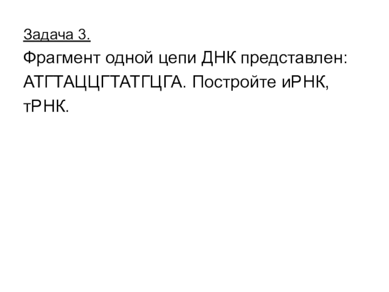 Задача 3.Фрагмент одной цепи ДНК представлен:АТГТАЦЦГТАТГЦГА. Постройте иРНК, тРНК.