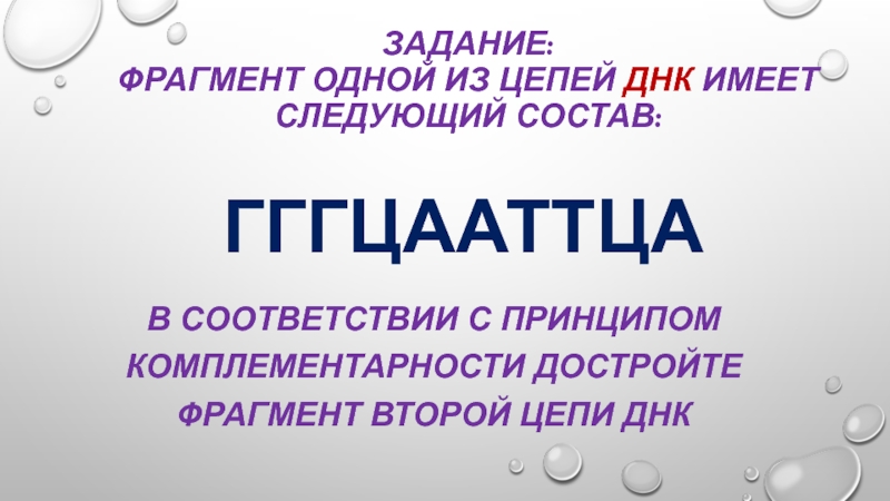 Слайд 13Задание: фрагмент одной из цепей днк имеет следующий состав: