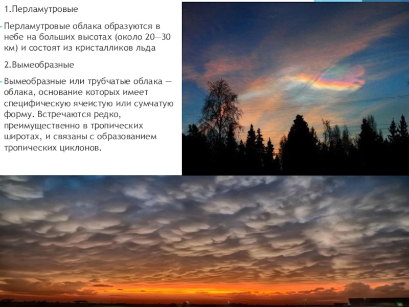 Перламутровые облака образуются в небе на больших высотах (около 20—30 км)