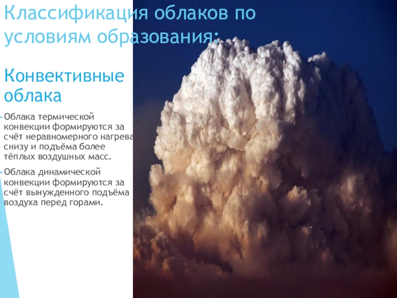 воздушных масс. Они возникают в результате адиабатического охлаждения тёплого воздуха при его подъёме по холодному.