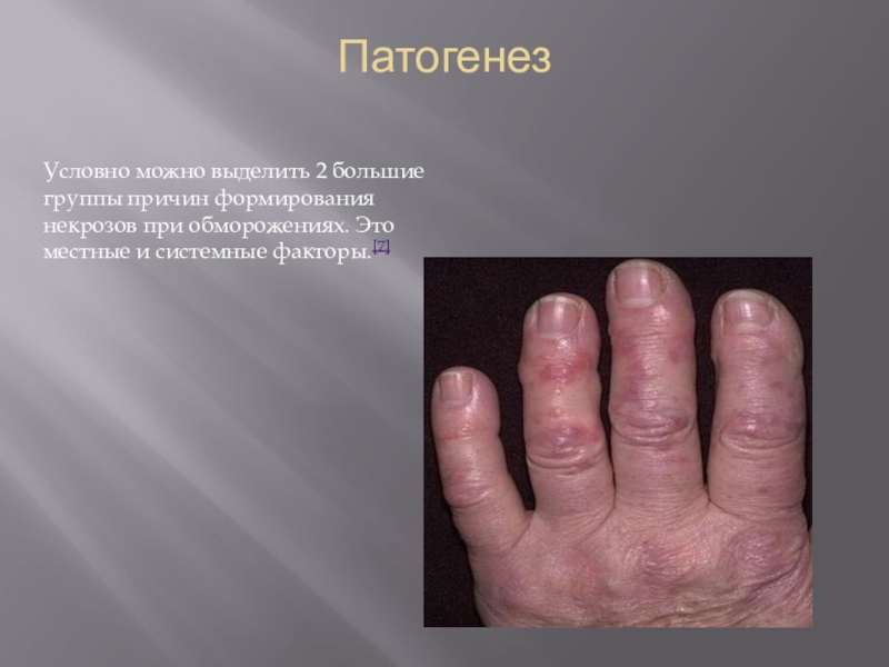 Условно можно выделить 2 большие группы причин формирования некрозов при обморожениях.