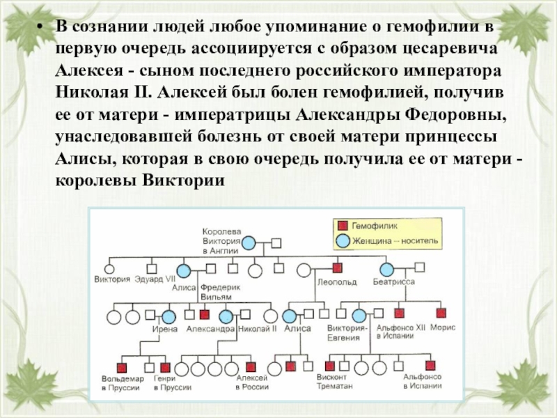 Слайд 13В сознании людей любое упоминание о гемофилии в первую очередь ассоциируется