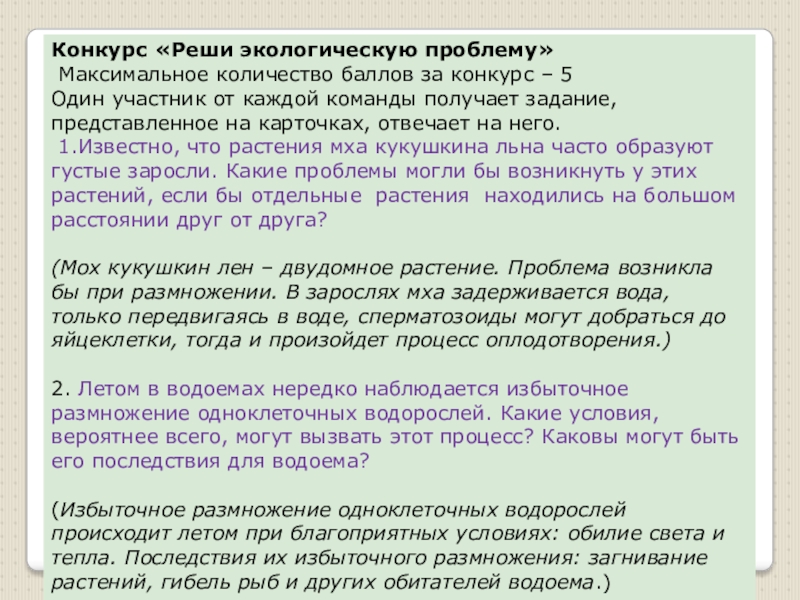 1.Известно, что растения мха кукушкина льна часто образуют густые заросли. Какие проблемы могли бы возникнуть у этих растений, если бы отдельные растения находились на большом расстоянии друг от друга?