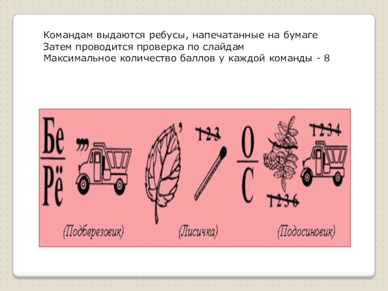 Слайд 13Командам выдаются ребусы, напечатанные на бумаге
