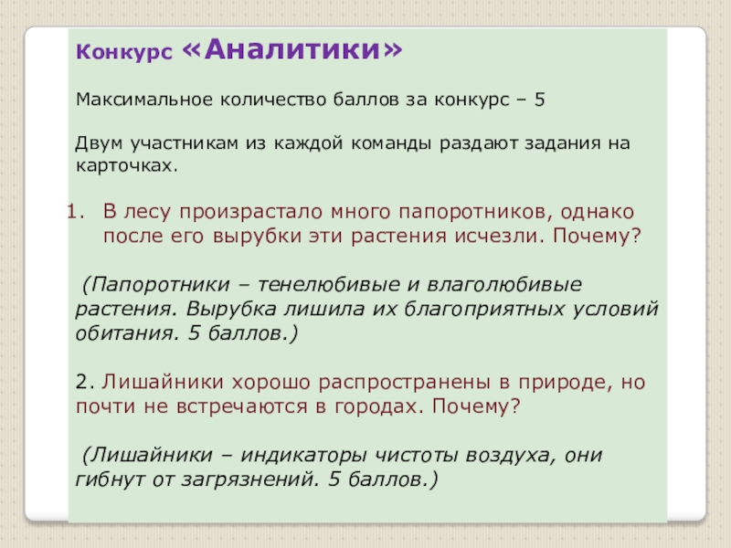 (Лишайники – индикаторы чистоты воздуха, они гибнут от загрязнений. 5 баллов.)