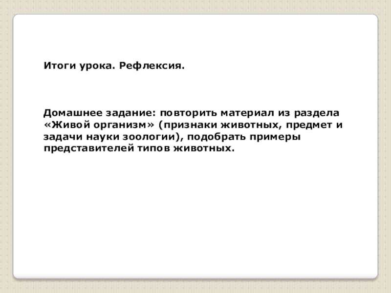 животных, предмет и задачи науки зоологии), подобрать примеры представителей типов животных.