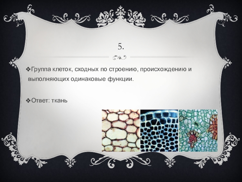 5.Группа клеток, сходных по строению, происхождению и выполняющих одинаковые функции.Ответ: ткань