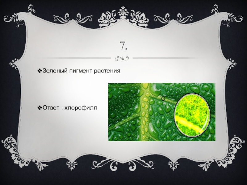7.Зеленый пигмент растенияОтвет : хлорофилл