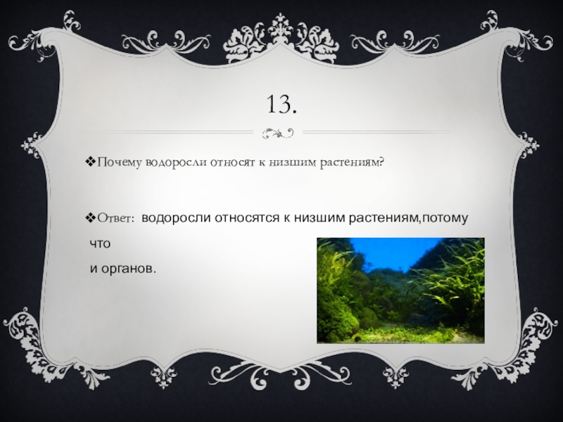 13.Почему водоросли относят к низшим растениям?Ответ: водоросли относятся к низшим растениям,потому что