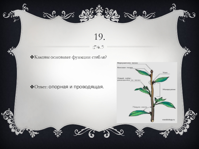 19.Каковы основные функции стебля?Ответ: опорная и проводящая.
