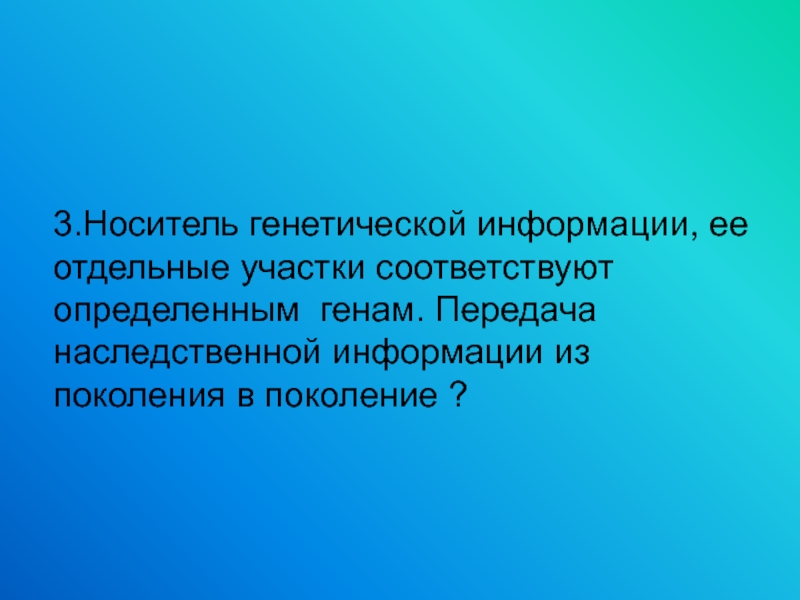 3.Носитель генетической информации, ее отдельные участки соответствуют определенным генам. Передача наследственной информации из поколения в поколение ?