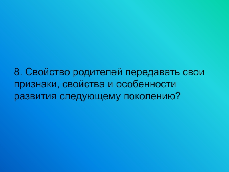 8. Свойство родителей передавать свои признаки, свойства и особенности развития следующему поколению?