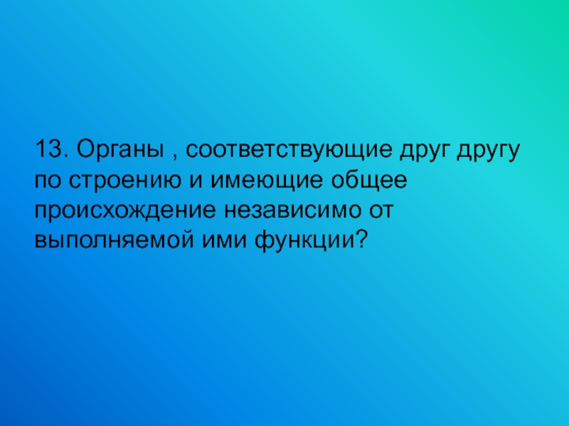 13. Органы , соответствующие друг другу по строению и имеющие общее происхождение независимо от выполняемой ими функции?