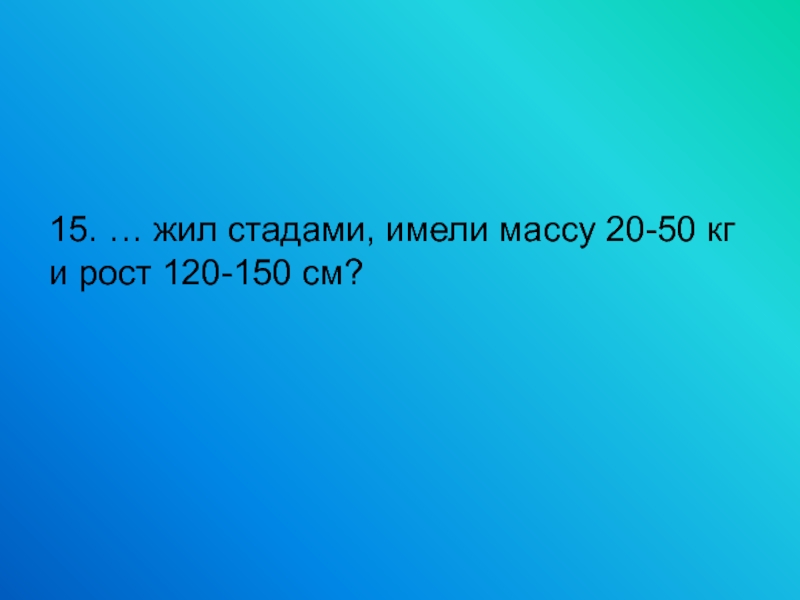 15. … жил стадами, имели массу 20-50 кг и рост 120-150 см?
