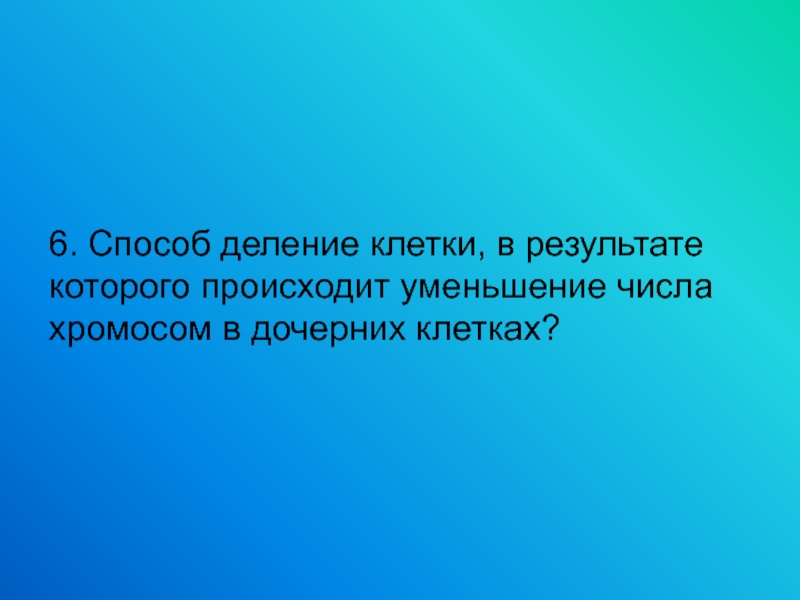 6. Способ деление клетки, в результате которого происходит уменьшение числа хромосом в дочерних клетках?