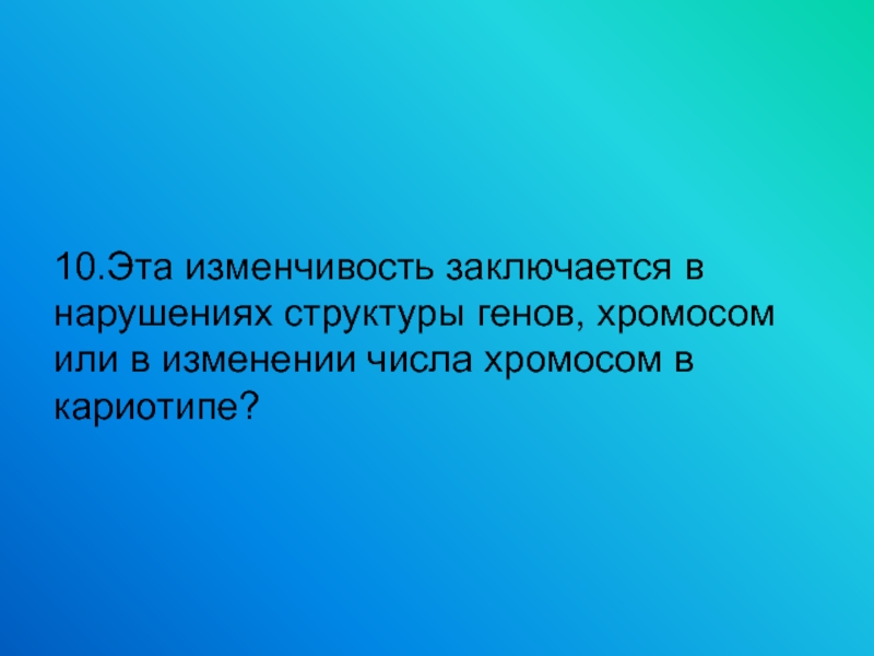 Слайд 2110.Эта изменчивость заключается в нарушениях структуры генов, хромосом или в изменении