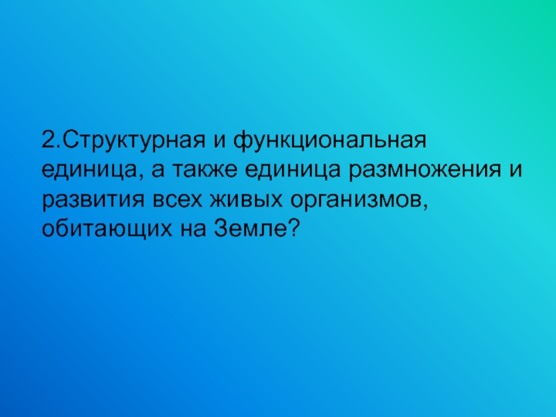 2.Структурная и функциональная единица, а также единица размножения и развития всех живых организмов, обитающих на Земле?