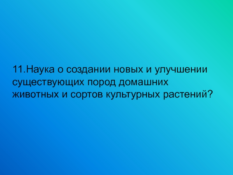 11.Наука о создании новых и улучшении существующих пород домашних животных и сортов культурных растений?