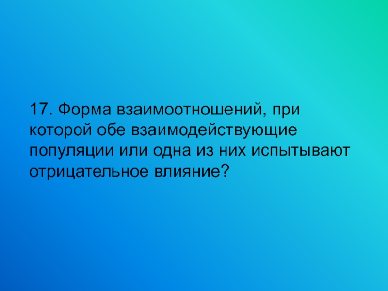 17. Форма взаимоотношений, при которой обе взаимодействующие популяции или одна из них испытывают отрицательное влияние?