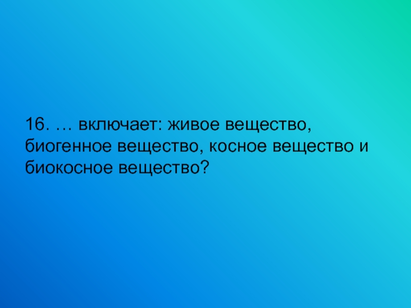 16. … включает: живое вещество, биогенное вещество, косное вещество и биокосное вещество?