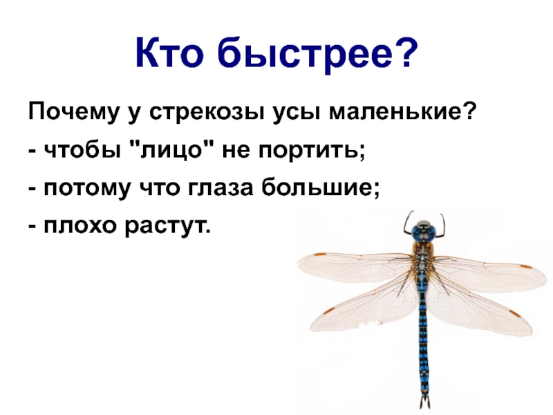 Кто быстрее?Почему у стрекозы усы маленькие?- чтобы