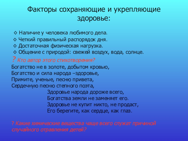 Воспитывающая: Воспитывать разумное отношение к пищевым привычкам, традициям, воспитывать отношение к своему здоровью, как к общественному достоянию, высшей социальной ценности в неразрывной связи с окружающей средой: “Здоровая планета-здоровый человек”.