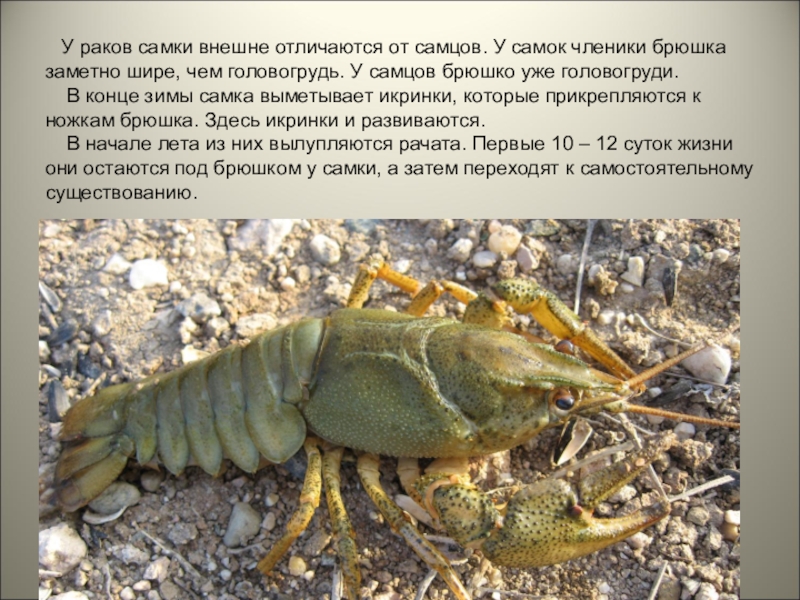 Слайд 9 У раков самки внешне отличаются от самцов. У самок