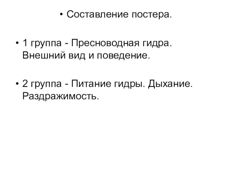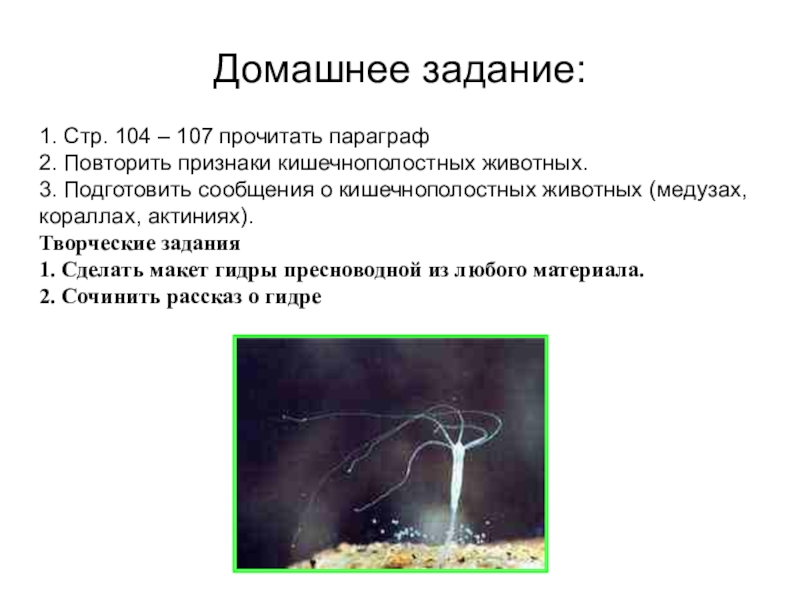 Пресноводная гидра. Внешний вид и поведение. Питание гидры. Дыхание. Раздражимость»
