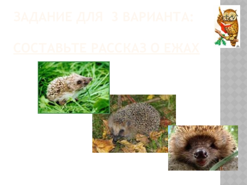 Слайд 13ЗАДАНИЕ ДЛЯ 3 ВАРИАНТА: СОСТАВЬТЕ РАССКАЗ О ЕЖАХ