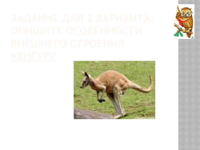 Слайд 12ЗАДАНИЕ ДЛЯ 2 ВАРИАНТА: ОПИШИТЕ ОСОБЕННОСТИ ВНЕШНЕГО СТРОЕНИЯ КЕНГУРУ
