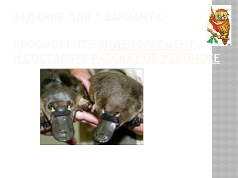 Слайд 11ЗАДАНИЕ ДЛЯ 1 ВАРИАНТА: ПРОСМОТРИТЕ ВИДЕОФРАГМЕНТ И СОСТАВЬТЕ РАССКАЗ ОБ УТКОНОСЕ