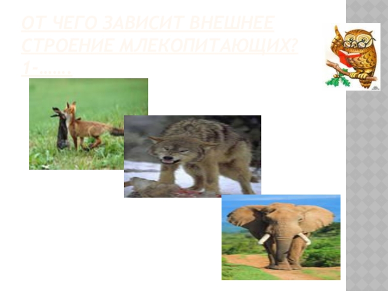 Слайд 9ОТ ЧЕГО ЗАВИСИТ ВНЕШНЕЕ СТРОЕНИЕ МЛЕКОПИТАЮЩИХ? 1-…….