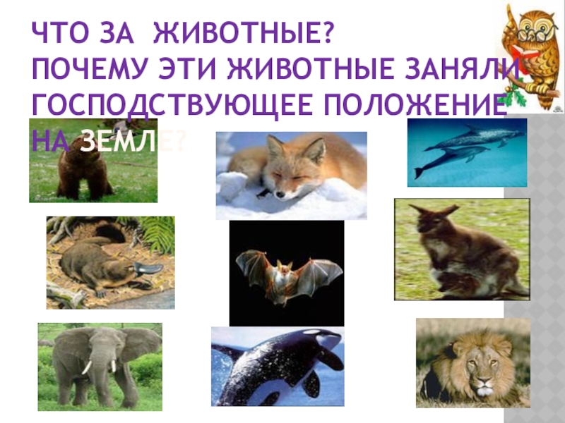 Слайд 7ЧТО ЗА ЖИВОТНЫЕ? ПОЧЕМУ ЭТИ ЖИВОТНЫЕ ЗАНЯЛИ ГОСПОДСТВУЮЩЕЕ ПОЛОЖЕНИЕ НА ЗЕМЛЕ?