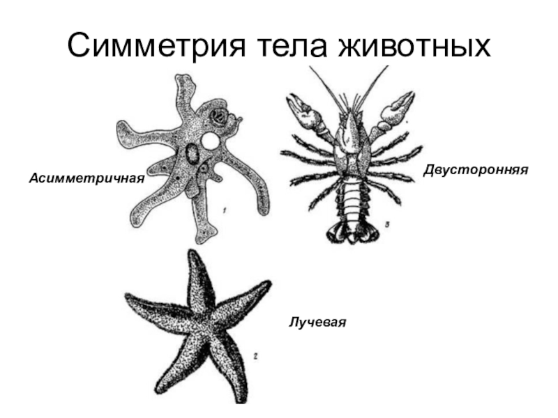 Симметрия тела животныхДвусторонняя АсимметричнаяЛучевая