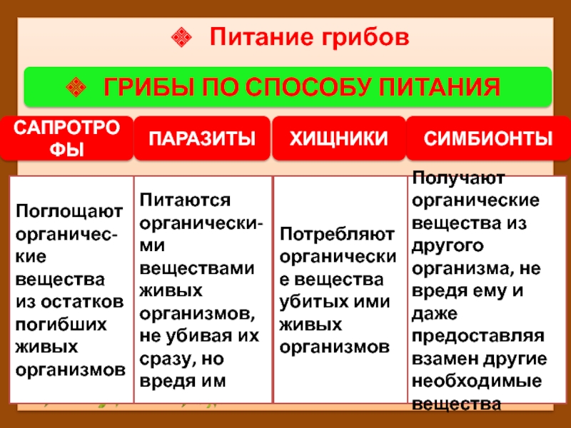 ГРИБЫ ПО СПОСОБУ ПИТАНИЯ